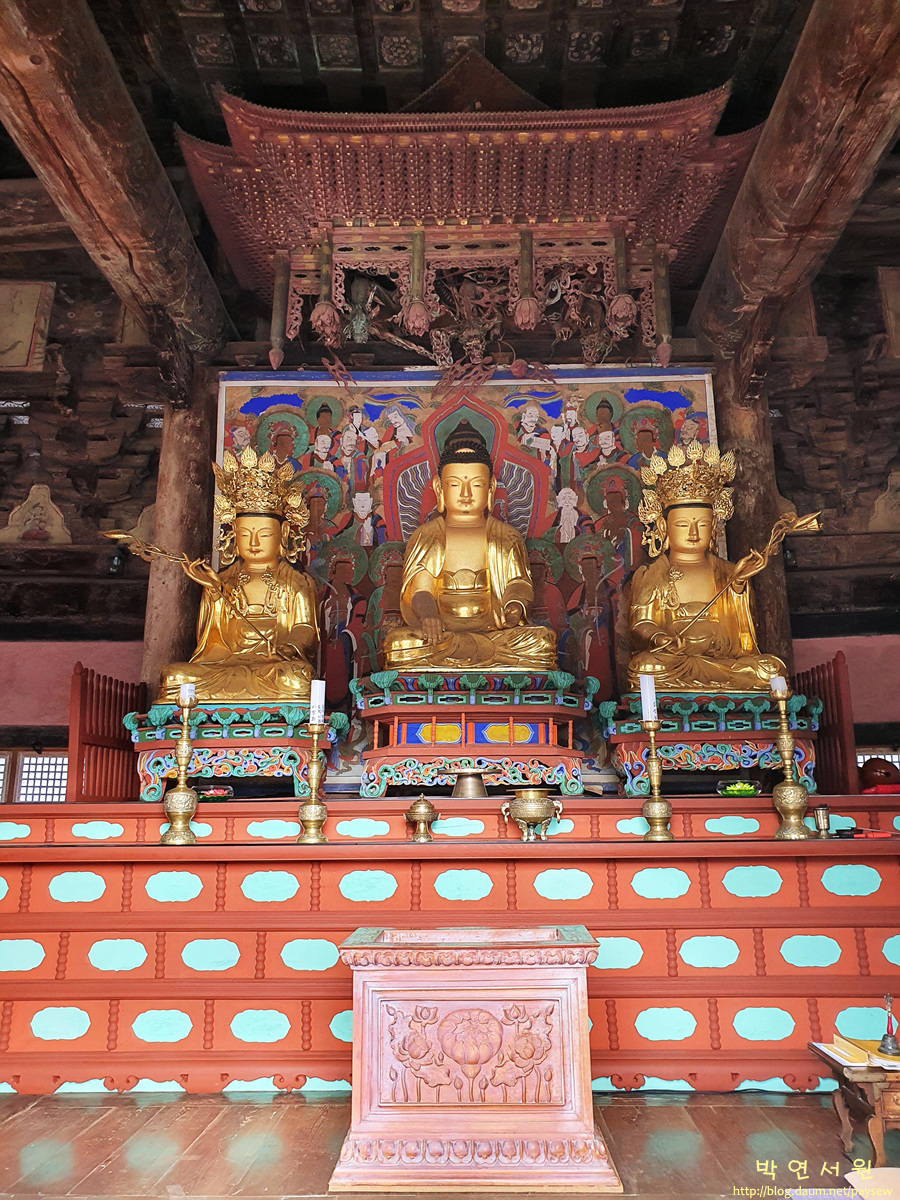 그 뒤, 1636년(인조 14) 계호(戒浩)가, 1658년 밀영(密英)과 혜징(慧澄)이 대웅전을 중건하였으며, 1728년(영조 4) 법천(法天)·찬견(贊堅)이 명부전을 중건하고, 1733년 하서암(下西庵)·석주암(石柱庵)·월정암(月精庵)을 중건하였다. 1737년 시왕상과 16나한상을 조성하였으며, 1783년 승담(勝潭)이 중수하였다.