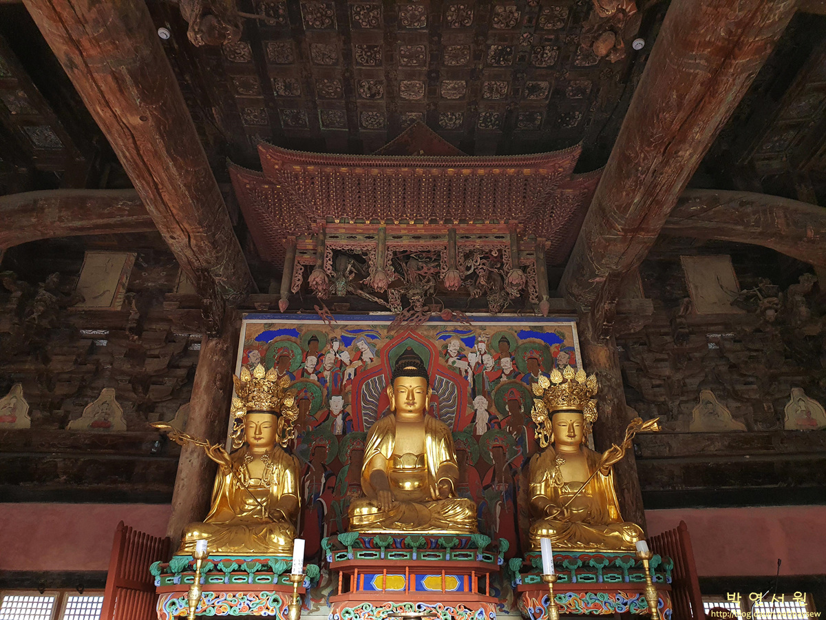 황금전(黃金殿)을 중심으로 하여 동쪽에는 청련각(靑蓮閣), 남쪽에는 청허루(淸虛樓), 북쪽에는 팔상전(八相殿), 서쪽에는 응진당(應眞堂)과 명부전(冥府殿)을 지었으며, 총 30여 동의 건물을 세워 『능가경(楞伽經)』을 강의하면서 많은 사람을 교화하였다.
