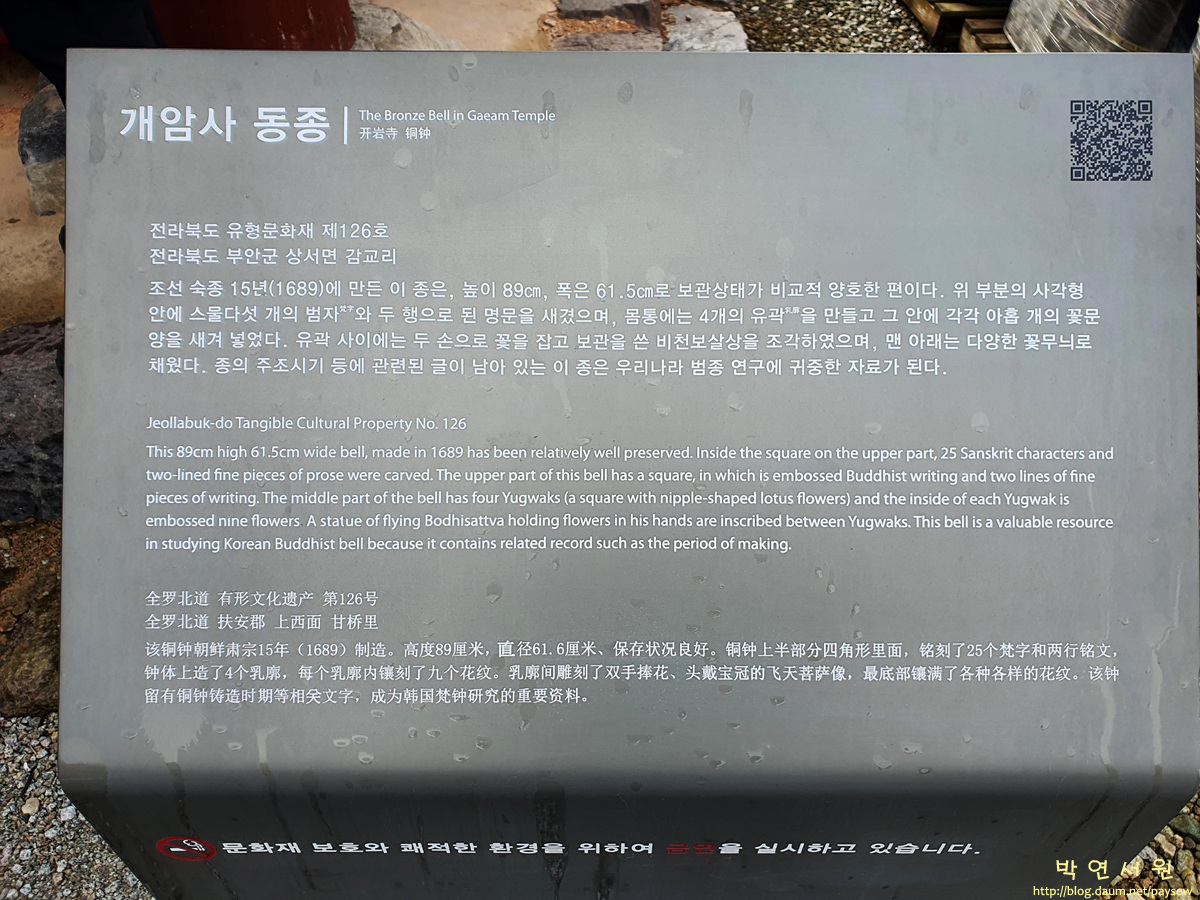 또한, 이 바위를 중심으로 한 주류성(周留城)은 백제의 유민들이 왕자 부여 풍(扶餘豐)을 옹립하고, 3년간에 걸쳐 백제부흥운동을 폈던 사적지로도 유명하다. 유물로는 1689년(숙종 5)에 조성한 전라북도 유형문화재 제126호인 동종(銅鐘)과 「중건사적기」가 있다.
