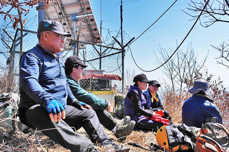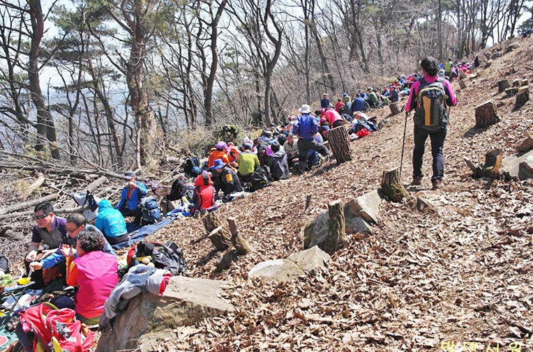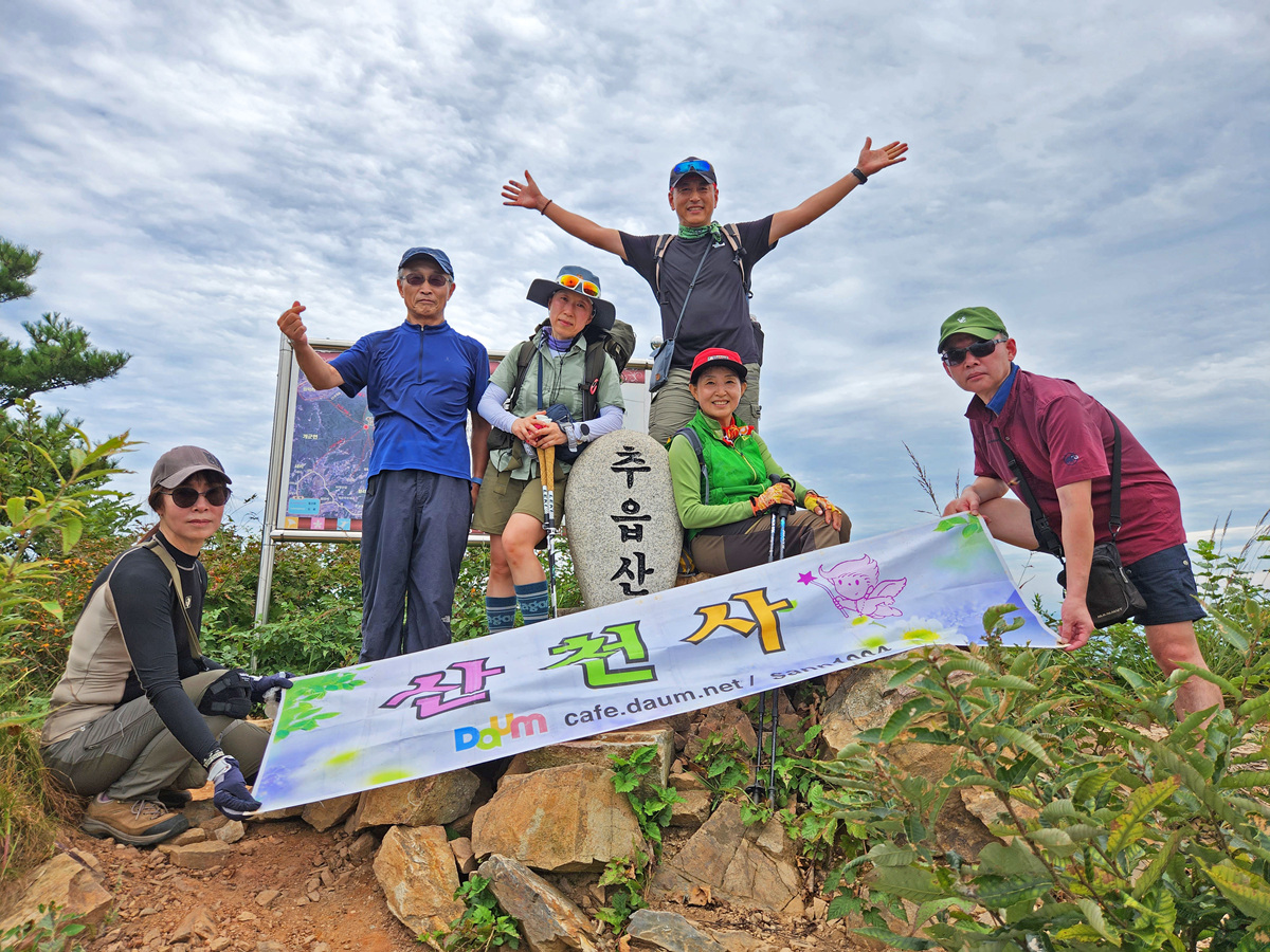 12시26분 추읍산 정상(583)에 당도하여 헬기장에서 점심을 먹는다.