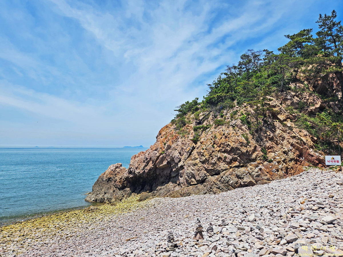 중간쯤에 이르자 파도소리가 요란하다. 몽돌로 가득 찬 해변은 파도가 칠 때마다 재잘거린다.
