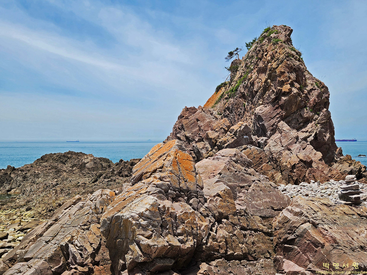 해변에는 높이 5m가 넘는 코끼리바위가 바다를 향해 늠름하게 버티고 서있다.