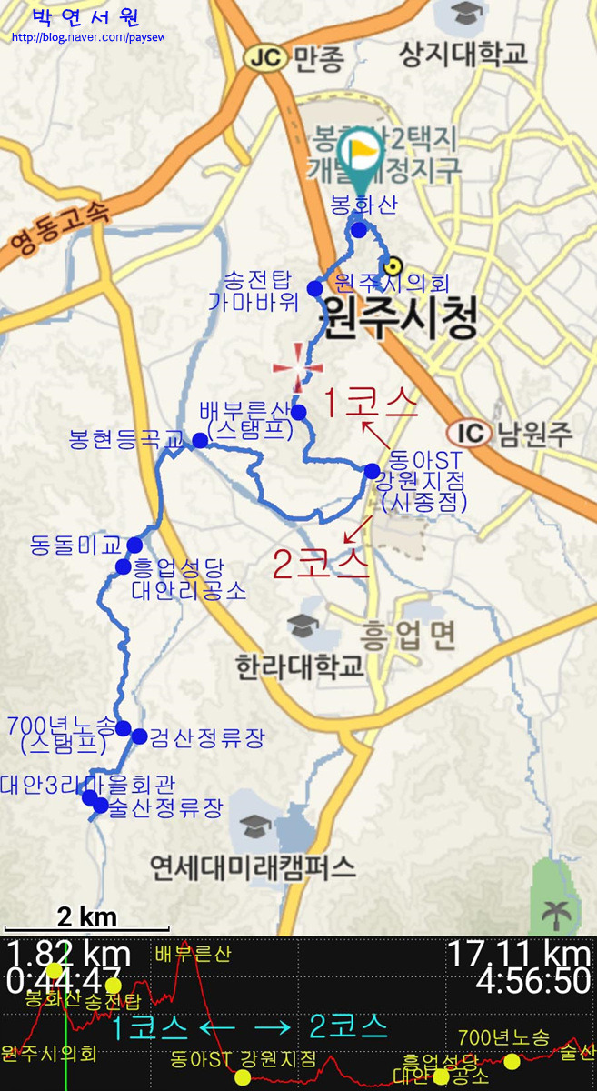 원주굽이길 1코스(배부른길)+2코스(700 노송길) 일부(동아ST강원지점-술산버스정류장)