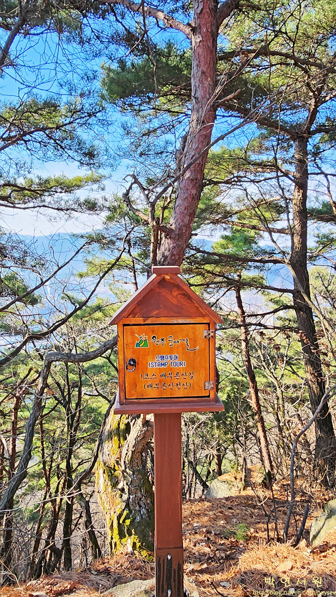 동암역05:58-(급행)-신도림역06:23/06:28-사당역1번출구06:46/07:00-양재역07:10/07:12-여주휴게소08:06/08:26-문막IC08:44-원주시청 의회동(≒189/165.6/193)09:00/09:05-봉화산(≒364/335.6/362.6, 1.56/1.508/1.5)09:35/09:41-송전탑,가마바위10:13/10:14-배부른산(419,≒444/415.1/440, 5.41/5.271/5.2)10:53/11:18(1구간 스탬프)-충정교회,동아ST 강원지점(1코스종점/2코스시점, ≒168/133.9/161.4, 6.99/6.791/6.9)11:45/11:52-행가교11:57-봉현등곡교12:36-승안교,대안1리 승안마을12:54/12:55-승안버스정류장(2-1코스시점)12:57-동돌미교12:58-흥업성당 대안리공소(천주교 성지)13:07/13:10-천왕사13:29-금산못13:36-700년노송(≒203/173.8/200.5, 8.28/15.076/15.5)13:38/13:44-검산교13:46-검산버스정류장13:48-대안3리마을회관/술산동경로당14:02-술산버스정류장위 고개,(주)네이처팩토리입구(≒235/200.1/229.3, 10.3/17.106/17.1)14:10/14:14-(버스)-비원갈비14:33/15:25(중식:돼지갈비)-양재역16:54/16:55-사당역14번출구17:08/17:19-신도림역17:38/17:44-(급행)-동암역18:19
