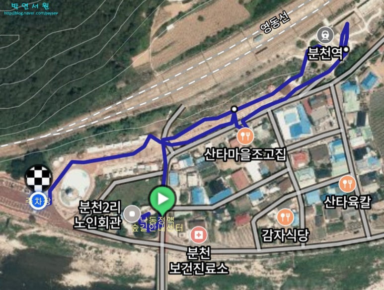 (분천 산타마을 보행거리 0.84/0.83/0.7km, 보행시간 총53분, 순27분/15분/20분,