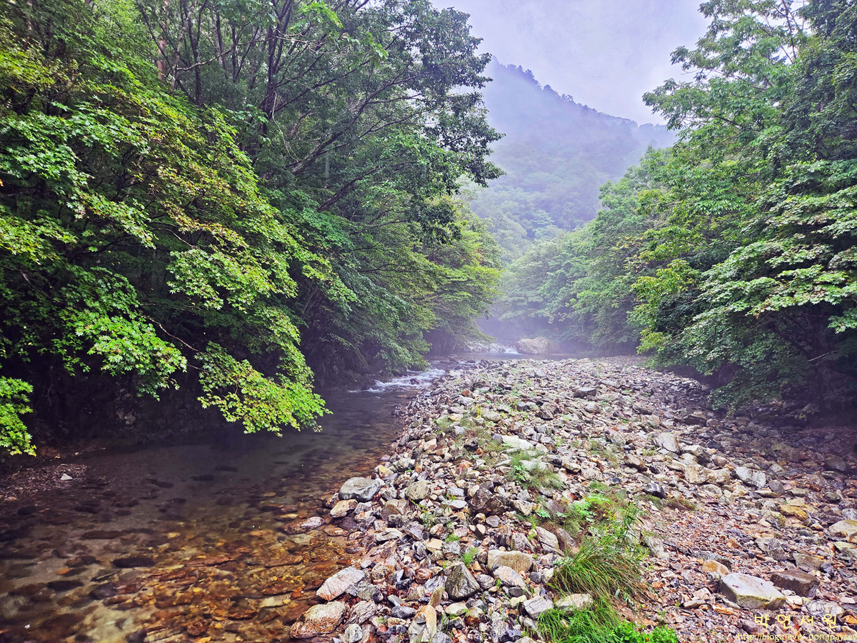 이 구간은 삼둔사가리중 한 곳으로 잘 알려진 아침가리계곡을 걷는 길이다.