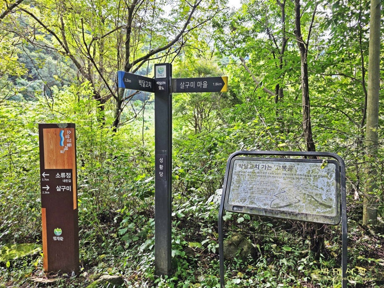 ㅇ2코스 : 자유 수호희생자위령탑 주차장(강원 인제군 인제읍 남북리 435-11)-살구미마을-전망대-원시계곡-숨멈이고개-소류정–3코스 입구-병풍폭포-위령탑 주차장(강원 인제군 인제읍 남북리 435-11) (14.5km/5시간)