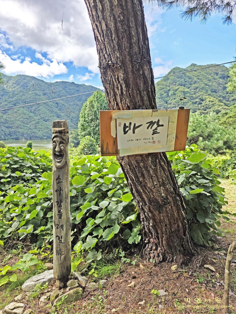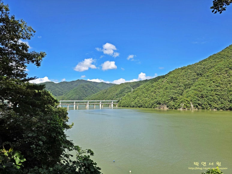 - 짙은 숲그늘 사이로 보이는 잔잔한 소양강과 함께 한다.