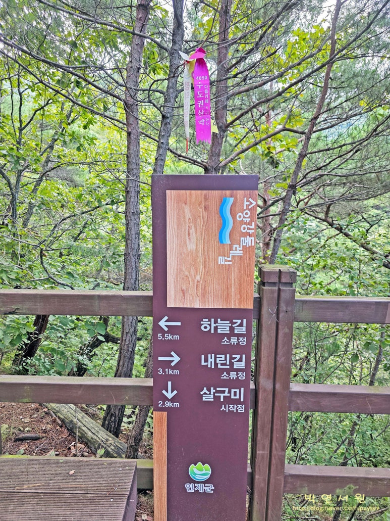 소양강 둘레길은 인제 부근 강 상류지역에 3개 코스가 있다.