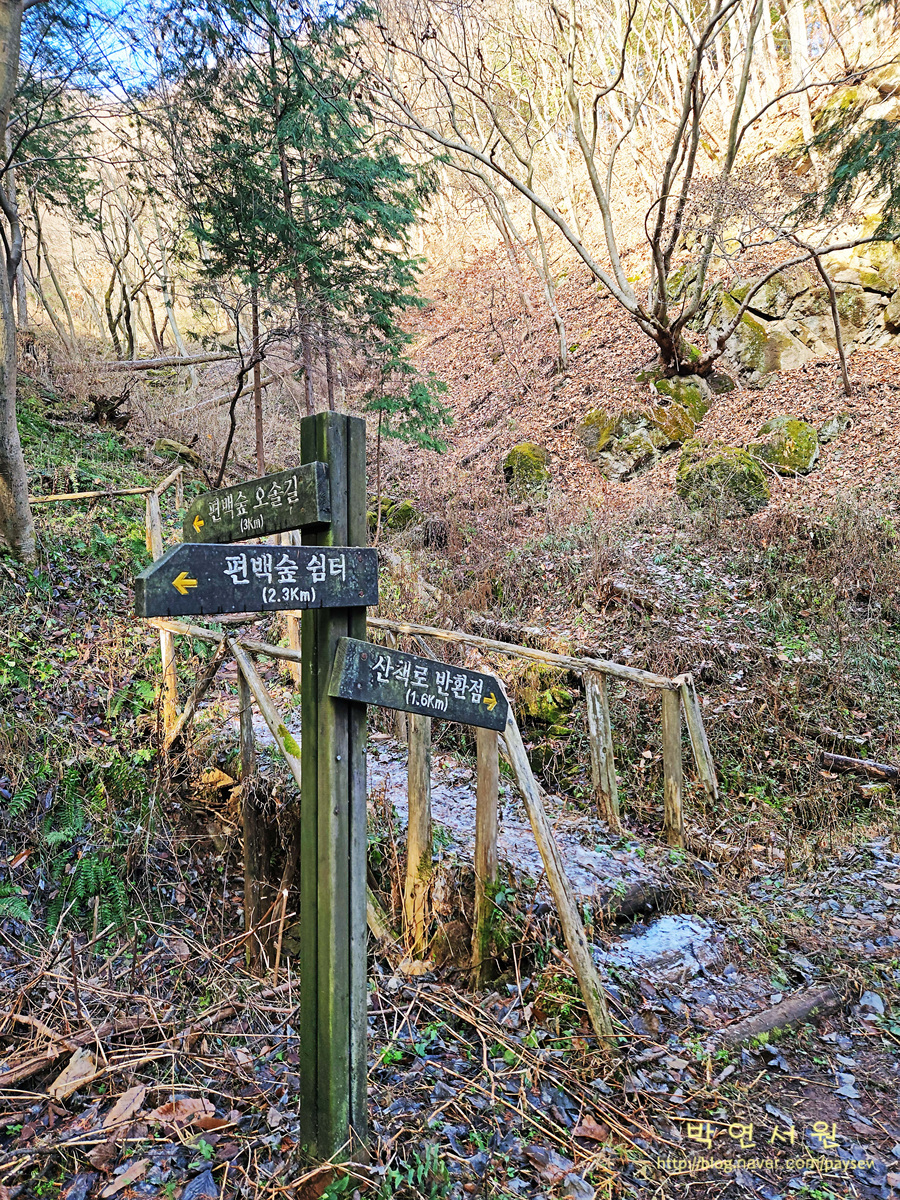상관편백숲 공영주차장-편백숲 쉼터-유황편백탕-산림욕장-통문(스탬프)-편백숲-상관편백숲 공영주차장 원점회귀 (6km/2시간 30분) 난이도 : 쉬움