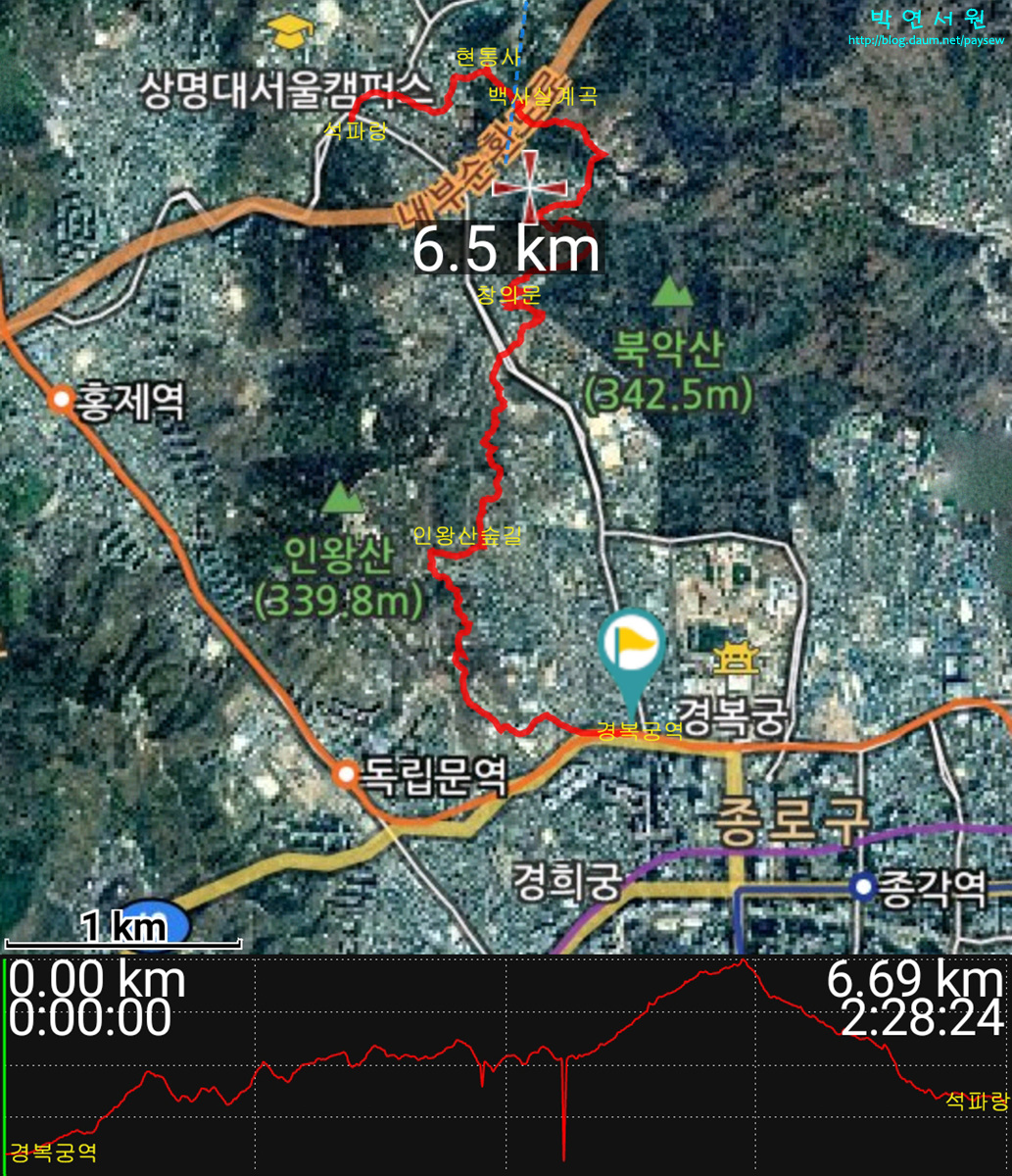 5. 홍제역-개미마을-기차바위-인왕산정상-창의문-백사실계곡-세검정초교
