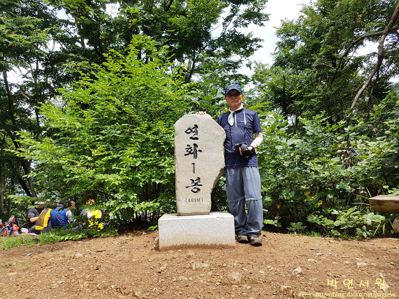 동암역06:45-(급행)-송내역06:52/07:12-옥산휴게소08:39/08:55-연화산IC11:04-영오초교11:08-영천중교11:10-연대암입구11:12-연화산도립공원 시설지구주차장,연화원,공룡발자국화석지(등산시점, ≒124/124.5, ↑암벽쉼터1.12,연화1봉2.26)11:15/11:22-절고개(≒329/323.1, 1.03/1.308, ←연화1봉1.2,↓주차장1.1)11:54/11:58-(좌)-연화1봉[489m, ≒466/465.4, 2.13/2.151, ↑연화산1.9,느재고개(옥천사후문)0.7,→연화2봉1.96,↓주차장2.3]12:26/12:42-느재고개(≒392/400.1, 2.84/2.847, ↑연화산1.2,↓연화1봉0.7)12:57/12:59-(포장도로)-등산로입구 갈림길(↖남산0.9,↑연화산1.01,↓연화1봉0.8)12:59-(직진)-싸리재(월곡재, ≒414/412.4, 3.6/3.616, ←연화산0.48,↗적멸보궁0.25,→시루봉,↓느재고개0.7)13:14/13:20-연화산(524/528m, ≒515/515.4/546, 4.19/4.212, ↑남산0.6,↓적멸보궁0.5,느재고개1.7)13:35/14:29(중식)-(비)-운암고개[↑남산0.22,황새고개0.6,←느재고개(옥천사후문)0.7,→좌연리(운암골)1.5,↓연화산0.35]14:42/14:43-갈림길(↑남산,←청련암0.3,옥천서0.6,↓느재고개0.7)14:43-(좌)-청련암(≒269/268, 5.42/5.526)14:57/14:58-옥천사(≒251/251.7, 5.66/5.815)15:03/15:05-연화원,시설지구주차장(≒124/122, 6.94/7.27)15:15/15:30-연화산IC15:43-죽암휴게소17:39/18:00-송내역19:48-소담왕돈까스20:00/20:30(석식)-송내역20:32-(20번버스)-벽산이삭아파트21:00
