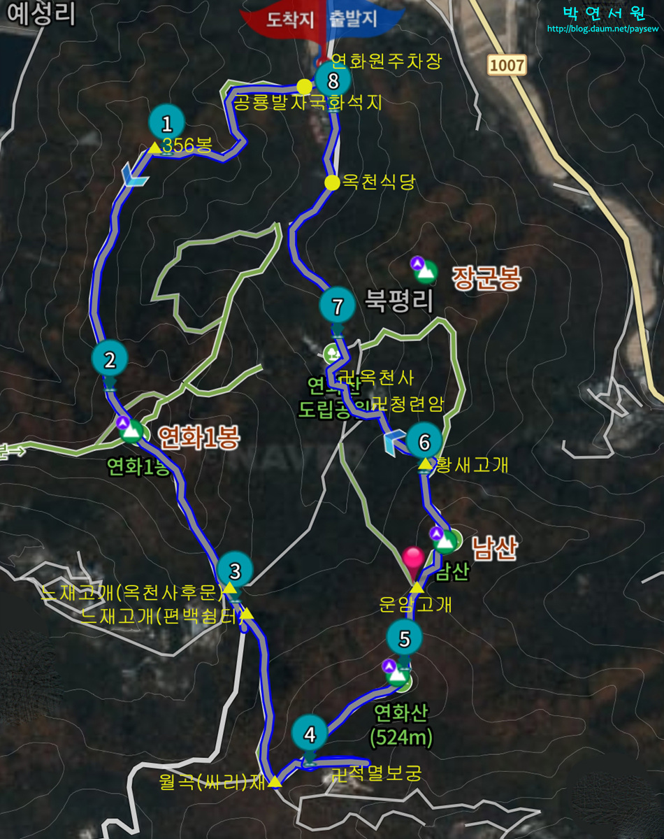 코스 : 공룡화석지-연화1봉-느재고개-싸리재-연화산-운암고개-남산-청련암-옥천사-공룡화석지