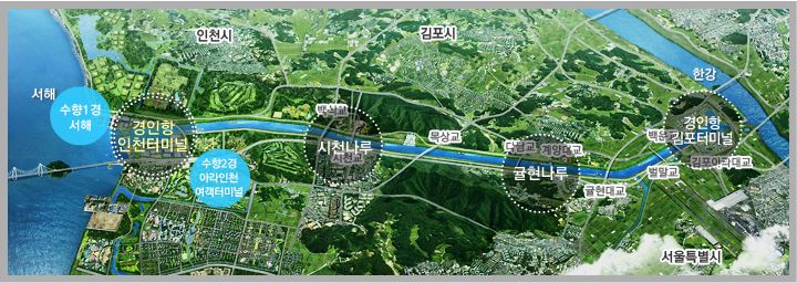 사업 구간은 길이 18km, 폭 80m의 대수로로 구성되어 있으며, 2009년 1월부터 2011년 10월까지 2조 2,500억여 원을 들여 완공하고 2012년 5월 25일 개통식을 가졌다.