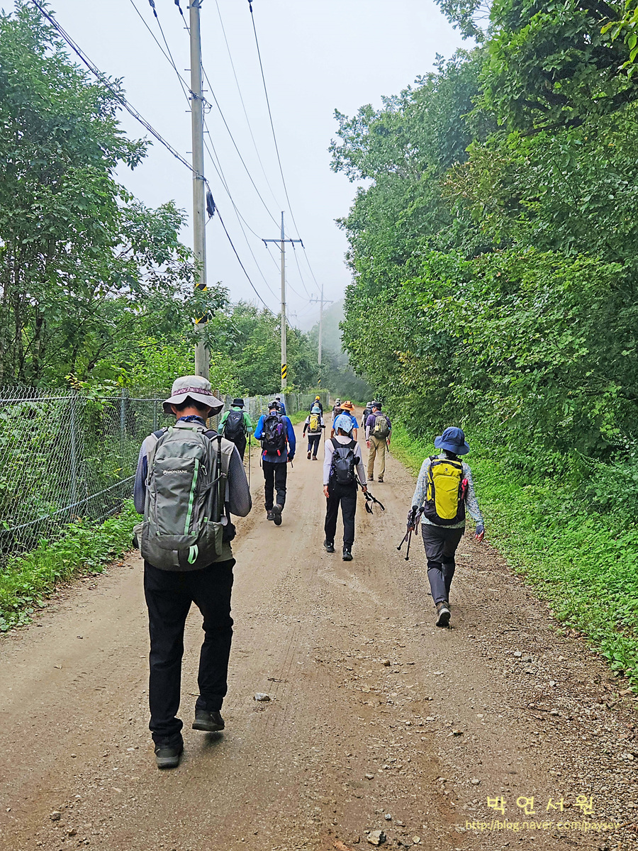 동암역05:37-(급행)-신도림역06:02/06:10-사당역1번출구06:28/06:41-양재역06:54-화양강랜드휴게소08:29/08:47-설악금강 서화마을 방문자센터09:42-(버스)-칠절봉산림감시초소,군부대앞(시점, ≒414/384.4/411.5)09:51/10:00-적계1교10:23-적계2교10:26-이정표(↑진부령초소14.9,세월교쉼터3.2,↓서화리초소1.5)10:27-적계3교10:29-적계4교10:31-힐링쉼터(맨발체험)10:33-적계5교10:36-적계6교쉼터/화장실(≒470/448.2/473.8, 2.72/2.736/2.7)10:38/10:46-이정표(↑진부령초소13.9,세월교쉼터2.2,↓서화리초소2.5)10:49-적계8교,이정표(↑진부령초소12.9,세월교쉼터1.2,↓서화리초소3.5)11:02-적계10교11:06-적계12교11:26-적계13교11:29-계곡11:30/11:46(탁족)-적계15교11:53-적계16교11:55-적계17교12:02-계곡쉼터(≒829/830.6, 7.33/7.3)12:11/12:21-적계삼거리쉼터(≒1080/1080.2, 8.99/9.0)12:55/13:47(중식:숲밥)-이정표(↑진부령초소7.0,전망쉼터2.0,↓서화리초소9.4,적계삼거리쉼터0.9)14:00-이정표(↑진부령초소6.0,전망쉼터1.0,↓서화리초소10.4,적계삼거리쉼터1.9)14:12-전망쉼터(↑진부령초소5.0,추모쉼터2.5,↓서화리초소11.4,적계삼거리쉼터2.9)14:31-이정표(↑진부령초소1.0,↓서화리초소15.4,추모쉼터2.5)15:19-진부령미술관,향로봉1초소,칠섭로(종점, ≒553/547.6, 16.0/17.02/16.9, ↓서화리초소16.4,추모쉼터1.5)15:36/16:14-가평휴게소17:40/17:51-양재역19:24-사당역14번출구19:40-속초어시장 방배점19:45/20:37(석식:회덮밥)-사당역14번출구20:42/20:47-신도림역21:04/21:08-(급행)-동암역21:34
