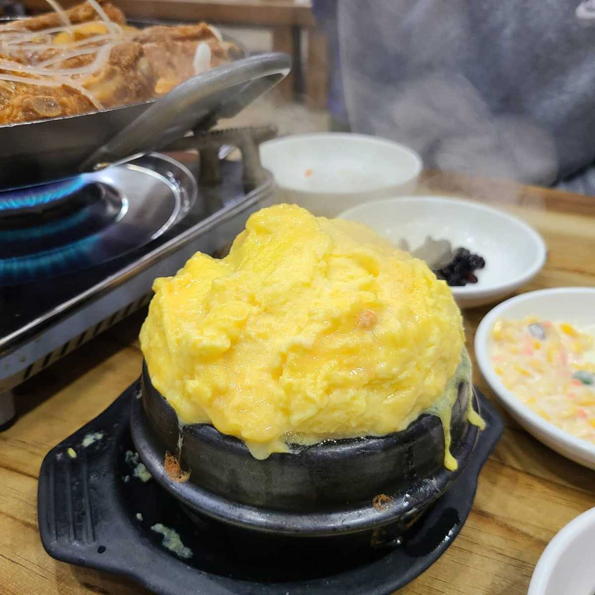 당면과 계란찜이 무한리필인 매운 물갈비 맛집 우아동 ‘신돈조선별관’. 전주의 3대 물갈비 맛집 중 하나로 메인 메뉴는 오직 매운 돼지갈비찜 하나뿐이다. 군더더기 없이 깔끔한 밑반찬은 콘 샐러드, 번데기, 백김치, 견과류 조림, 동치미, 단무지무침, 샐러드까지 매운 갈비찜에 곁들여 먹기 좋은 반찬들로 꾸려져있다. 큼지막한 갈빗대와 당면이 푸짐하게 올라간 매운돼지갈비찜은 보기에는 많이 매워 보이지 않은 비주얼이지만 달큰한 채수와 후추의 알싸한 맛이 조화롭게 어우러져 깔끔한 매운맛을 낸다. 부드러운 돼지고기와 폭신한 계란찜의 조합도 잘 어울린다.