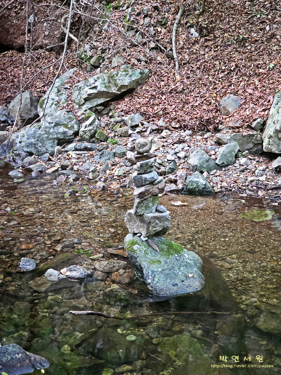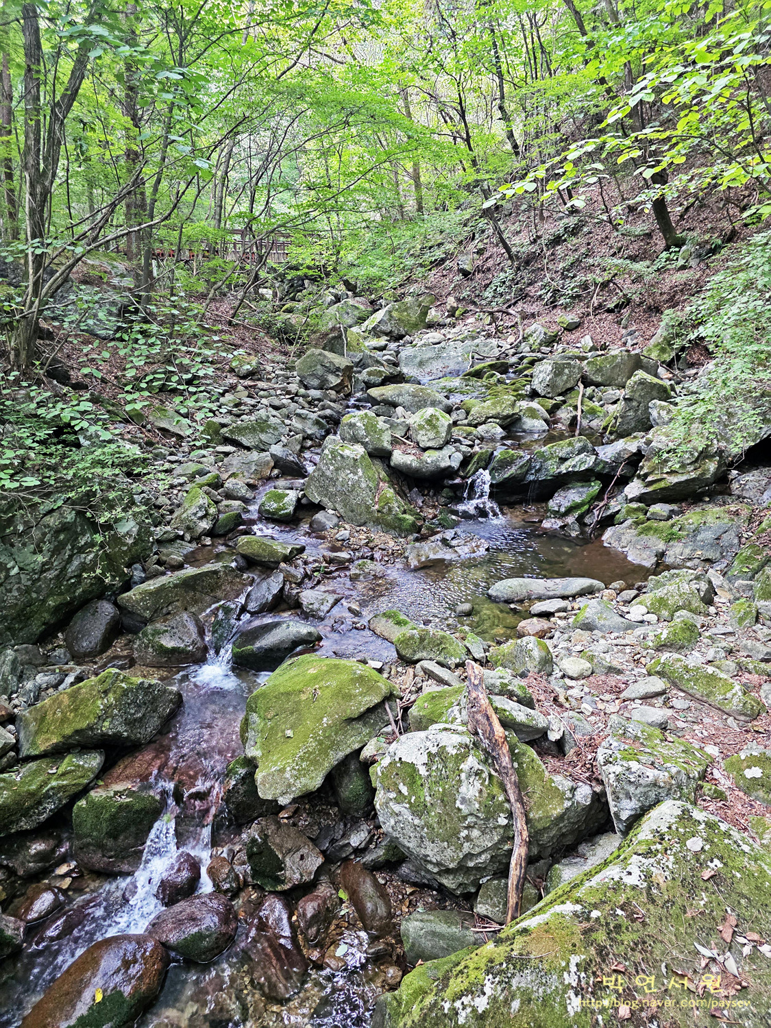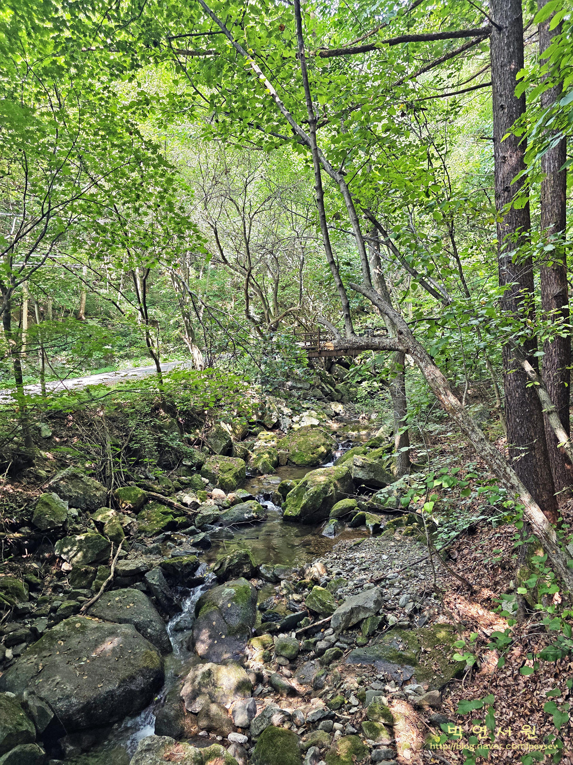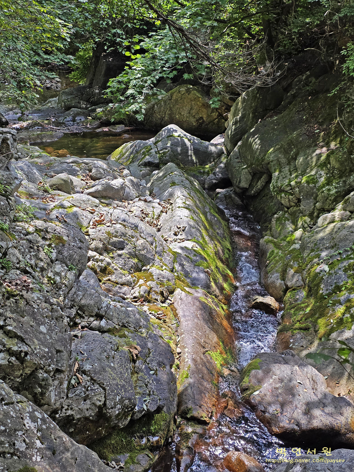 역사가 깃든 산사와 잣나무숲을 지나 수없이 많은 작은 폭포와 기암들이 절경을 이루는 계곡길이다.