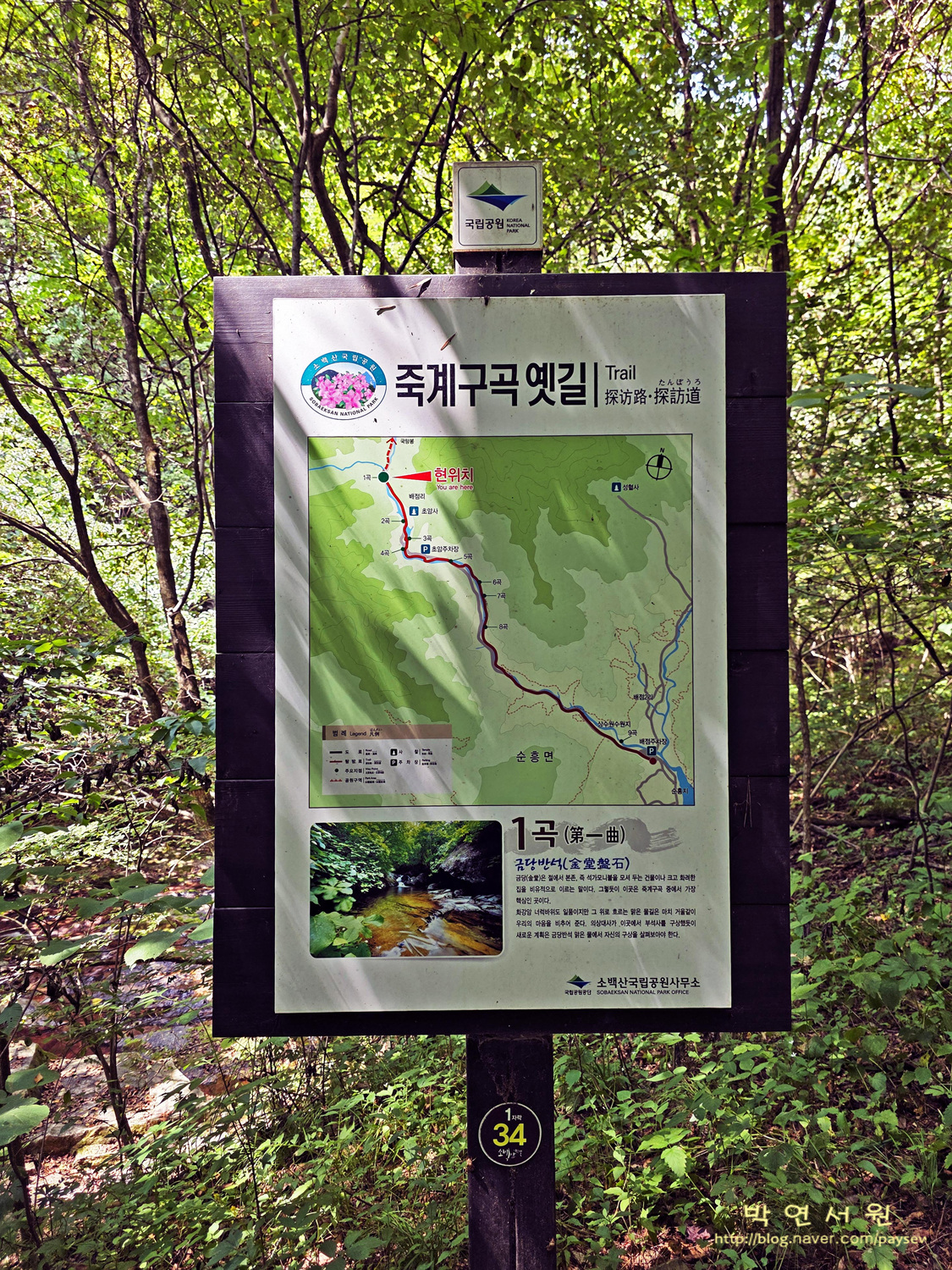 짙은 숲 그늘을 걸은 후 또 다시 만나는 명승 죽계구곡은 우리의 눈을 황홀하게 해 준다