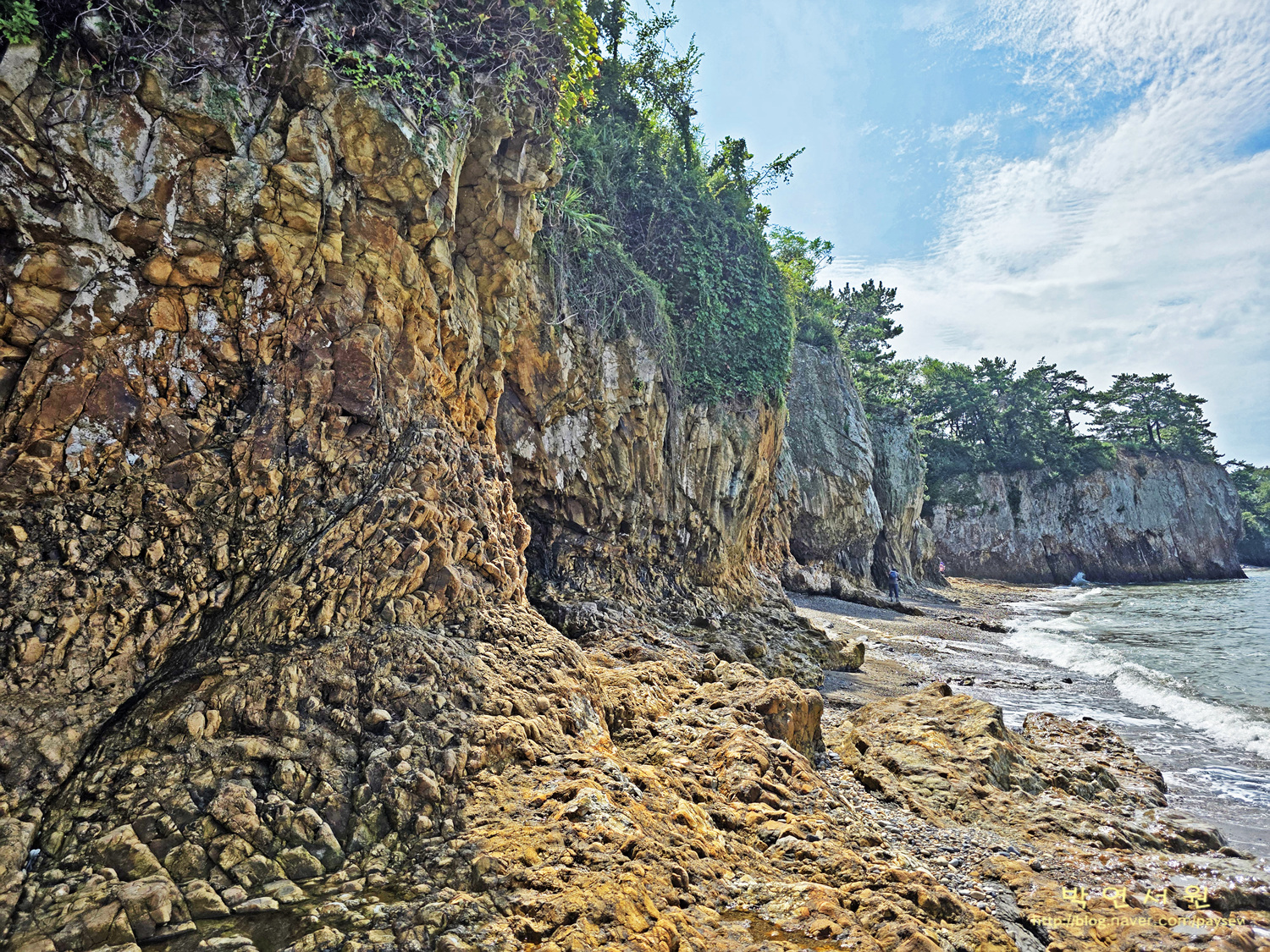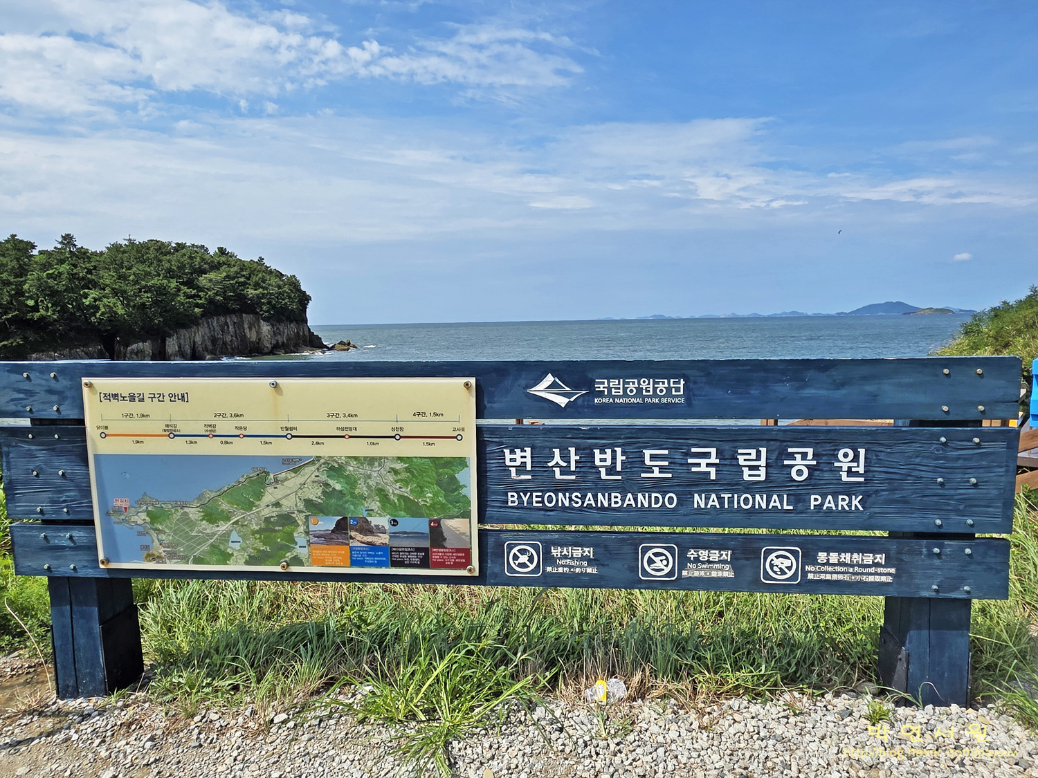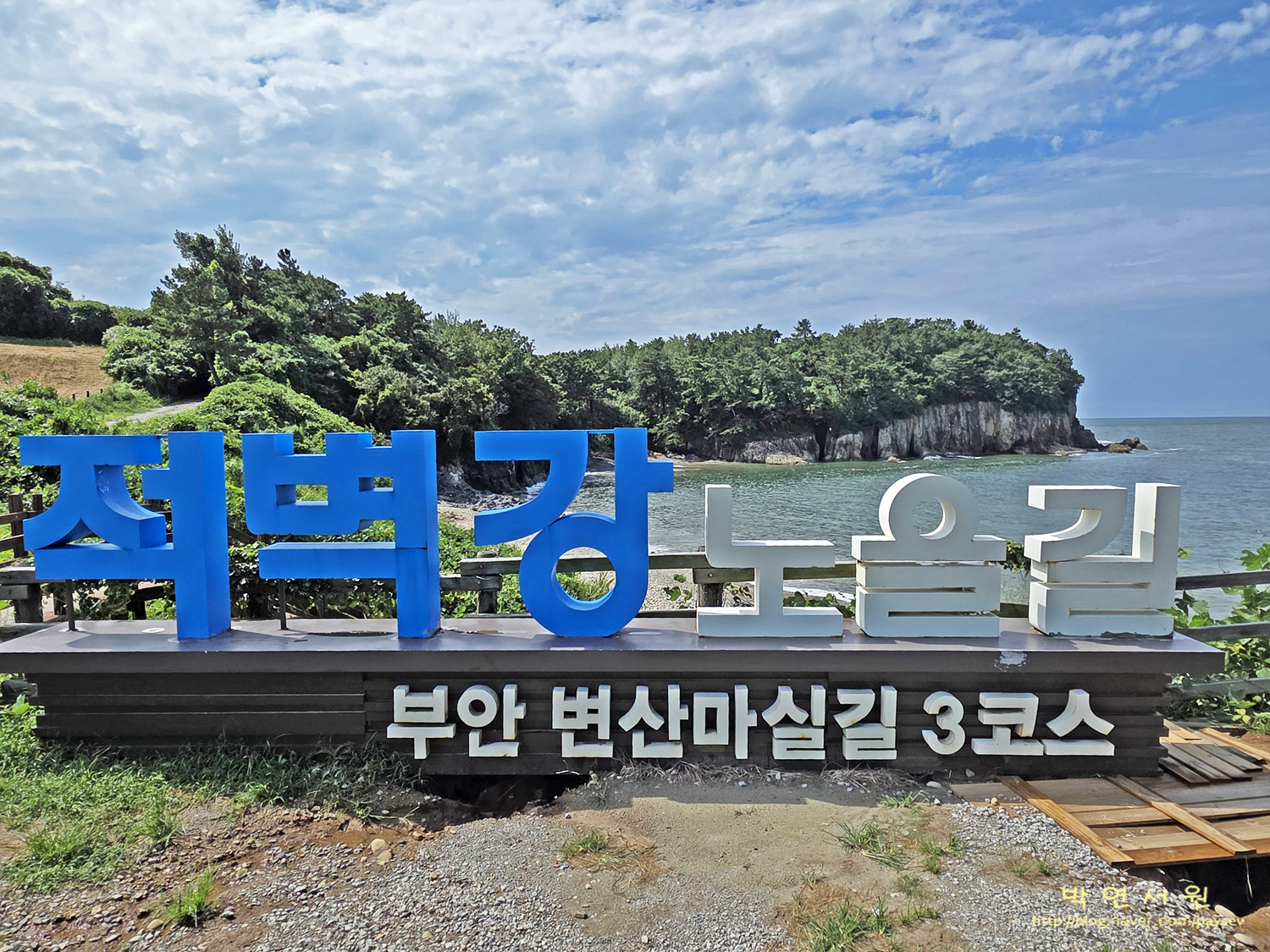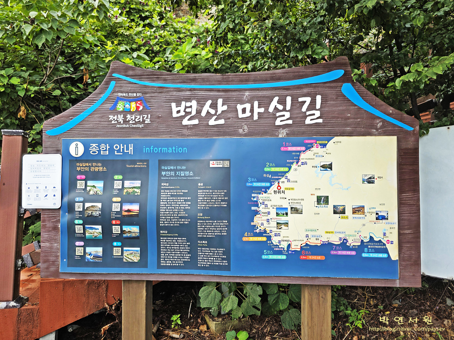 코스 : 변산 해수욕장 공영주차장(전북 부안군 변산면 대항리 411-3)-마실길2코스(상사화길)-백옥정 세심석-출렁다리-난가벽-임천석대-징검다리-반야사-문수전-징검다리-편백나무숲-반야교-격포항 수산시장 주차장(전북 부안군 변산면격포항길 64-13) (10km/4시간)