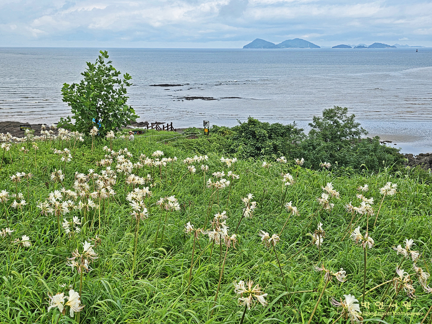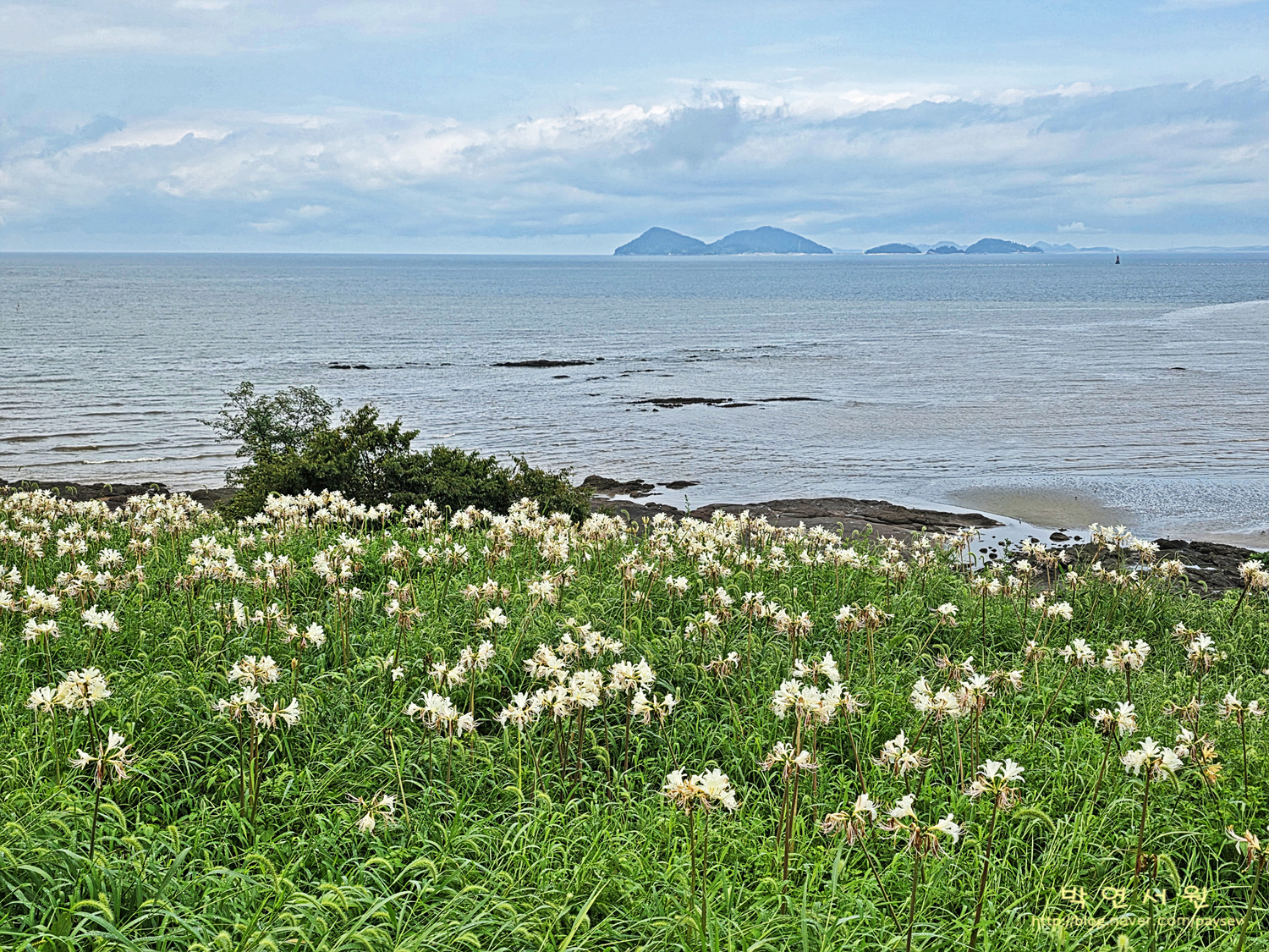 - 서해의 푸르른 가을 바다 옆으로 피어나는 노랑 상사화의 물결 속에서 가을의 정취를 만끽한다